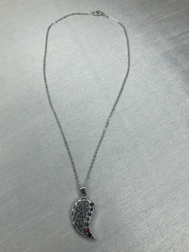 Pendentif métal aile chakras 1.25'' H chaine incluse